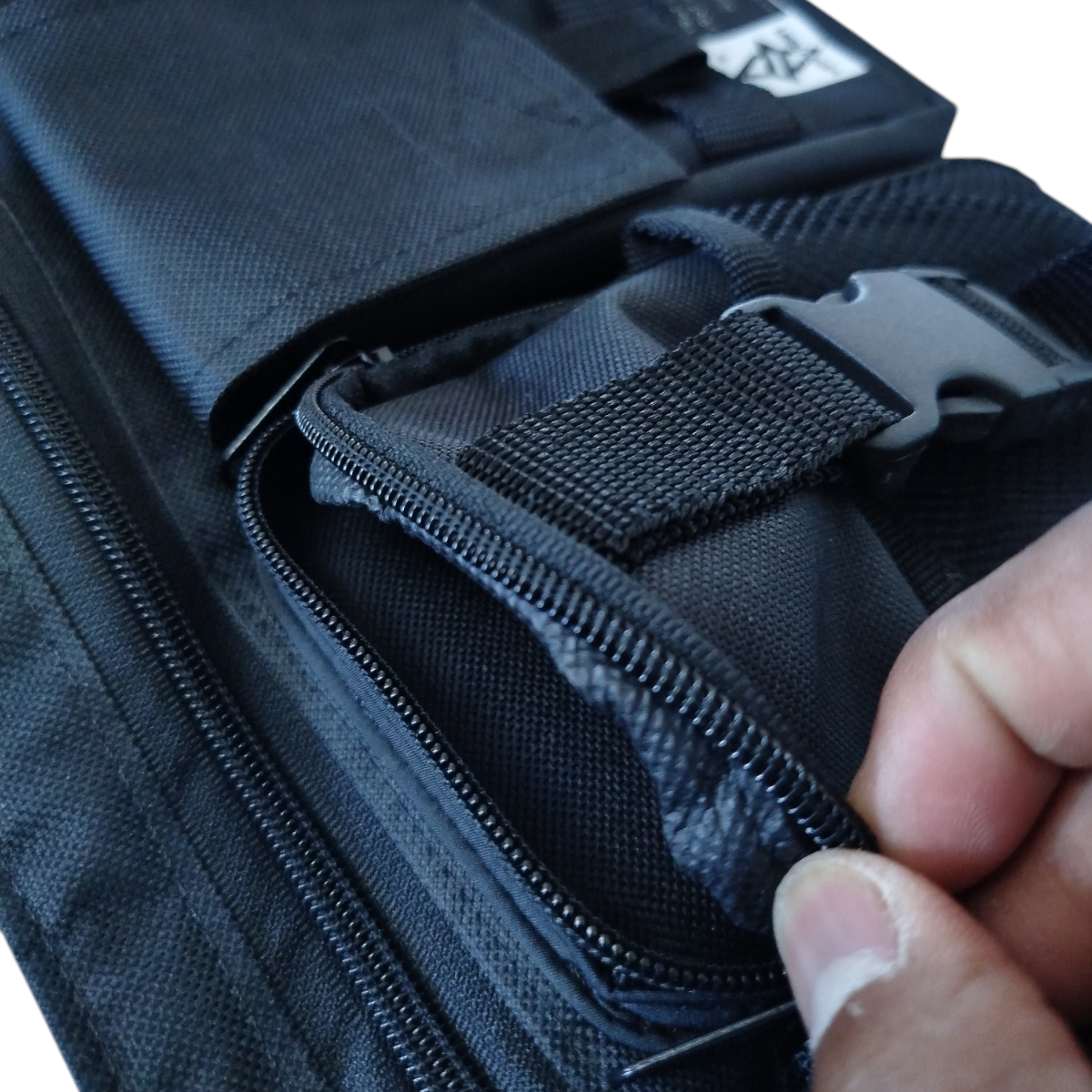 Cuenta con 5 compartimentos, incluyendo un porta celular seguro, organiza tus esenciales y tenelos siempre a mano. Su material resistente al agua protege tus pertenencias de la lluvia, mientras que las correas ajustables garantizan comodidad en cada movimiento.